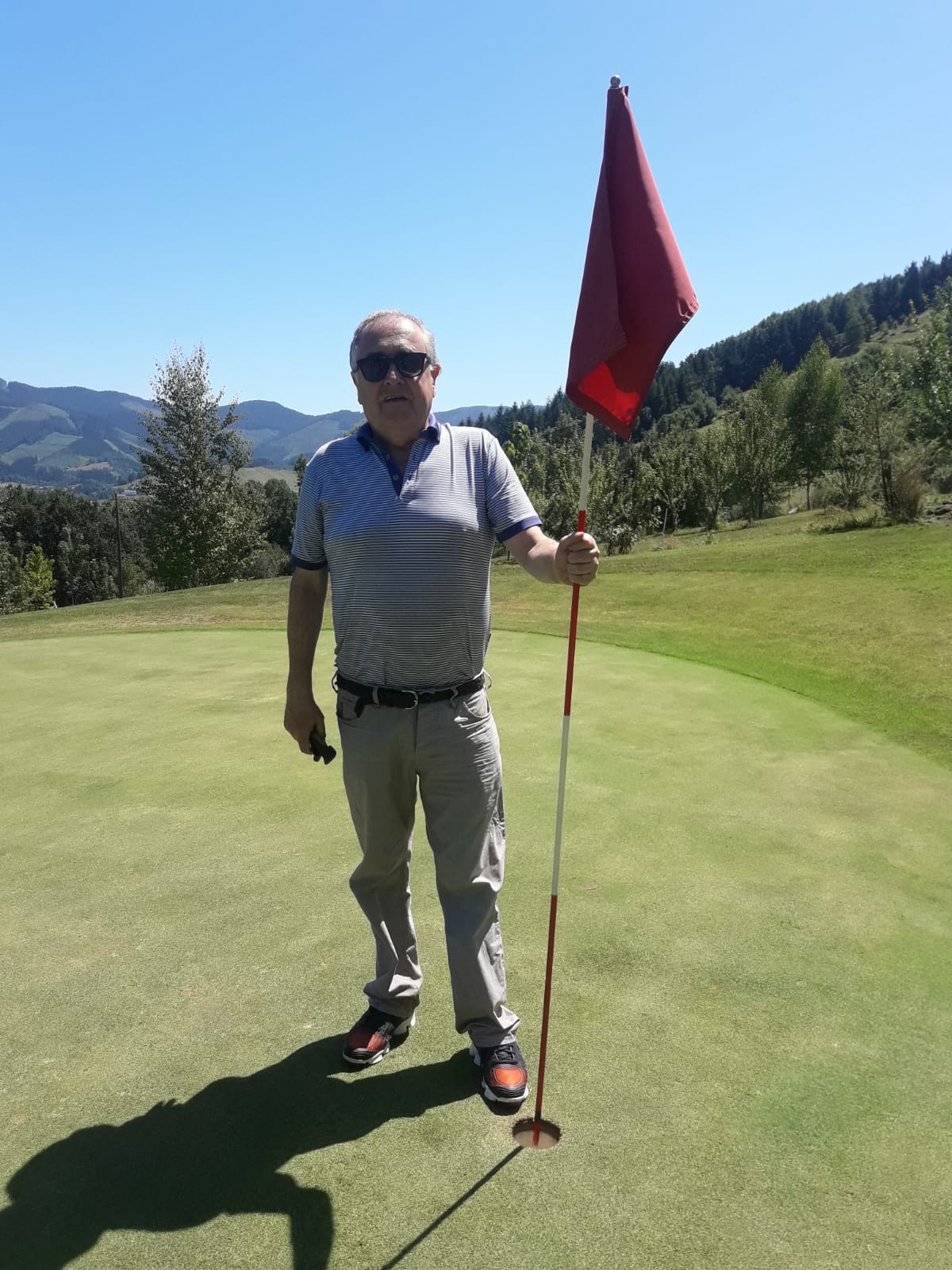 "mi primer hoyo en uno en un campo peninsular, con viento y campo embarrado, los anteriores fueron en las Islas Canarias, con mejores condiciones meteorologicas"